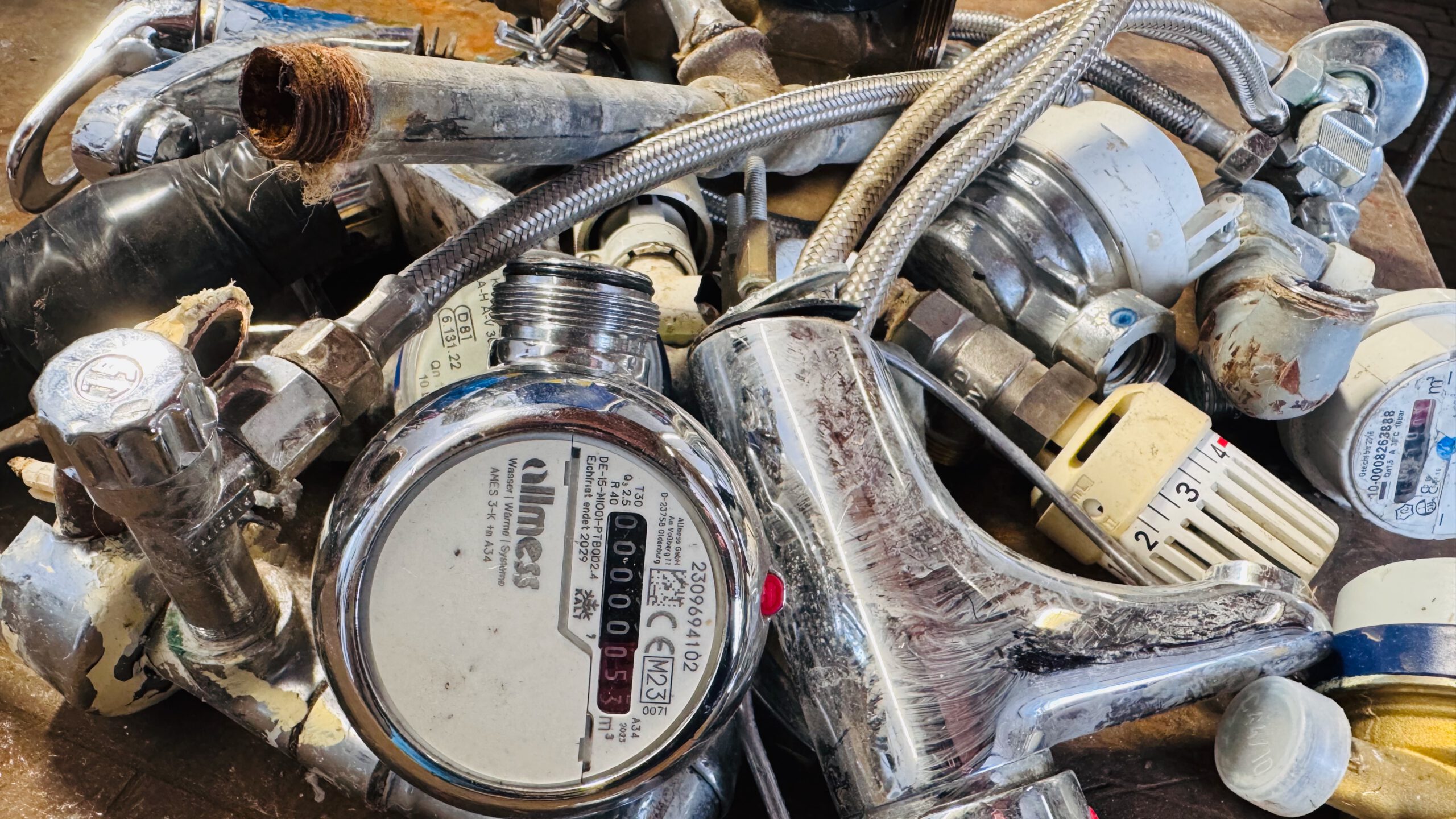 unsaubere Rohre z.B. Wasserleitungen mit wenigen Anhaftungen aus Messing, Stahl, Edelstahl, Kunststoff, usw.